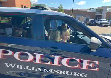 We appreciate our local heroes who keep our community safe. They also are so wonderful to treat the kids to a real-life experience inside a police car and on a police motorcycle!
